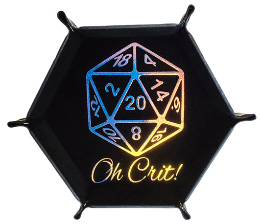 'Oh Crit' black holographic dice tray