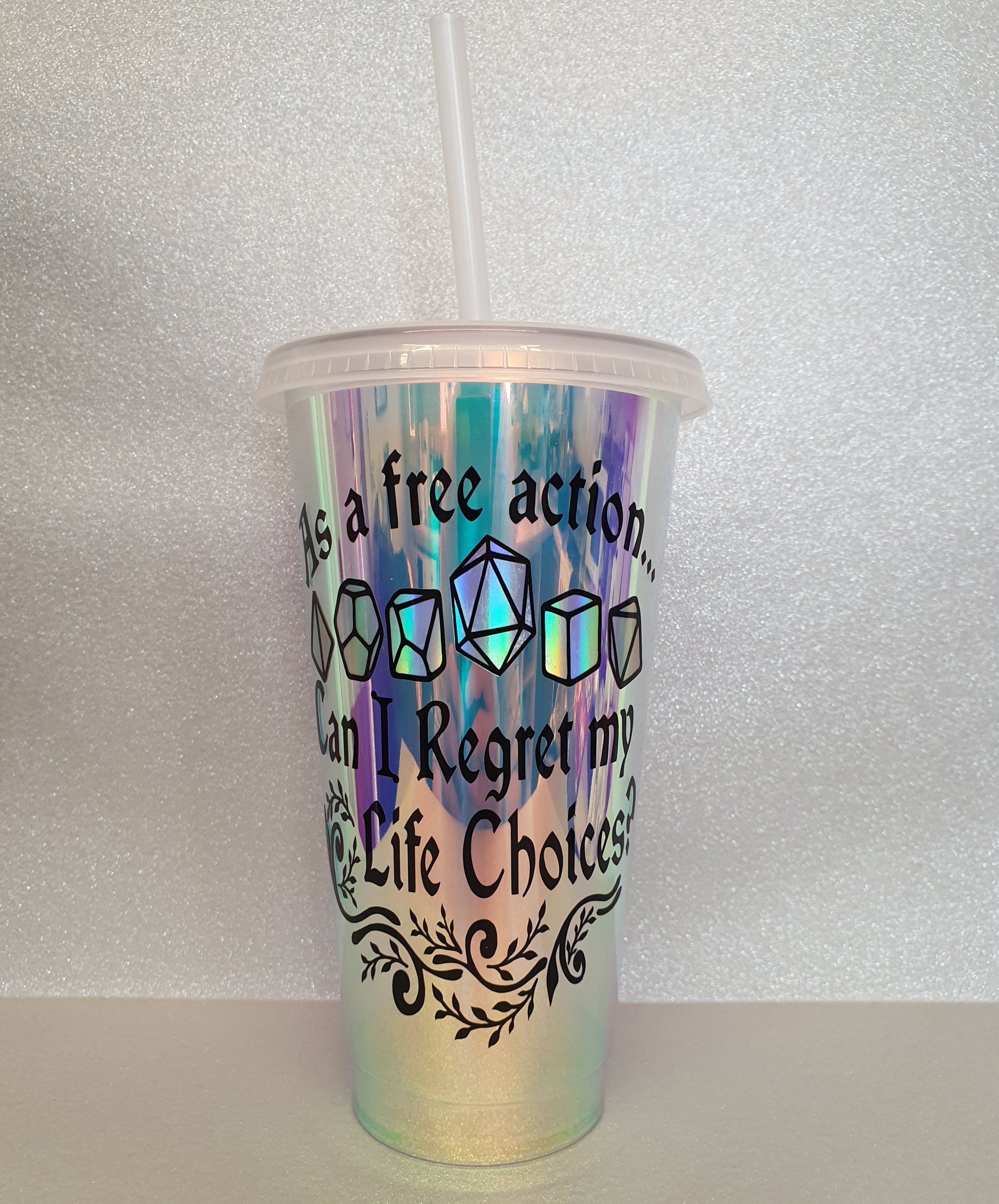 A holographic cup ideal for cold drinks during those moments of questioning your parties decisions.