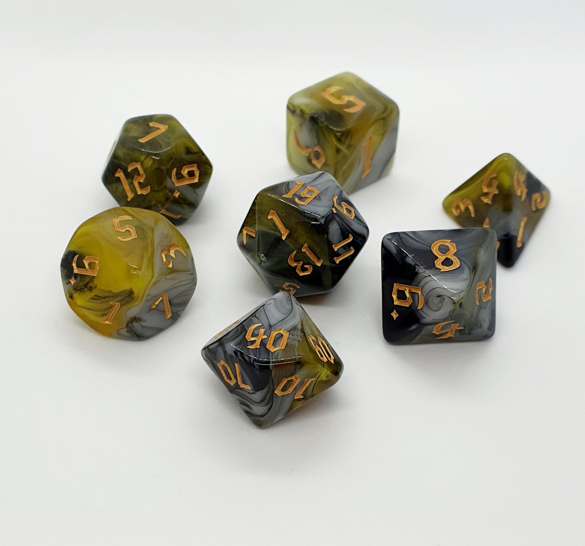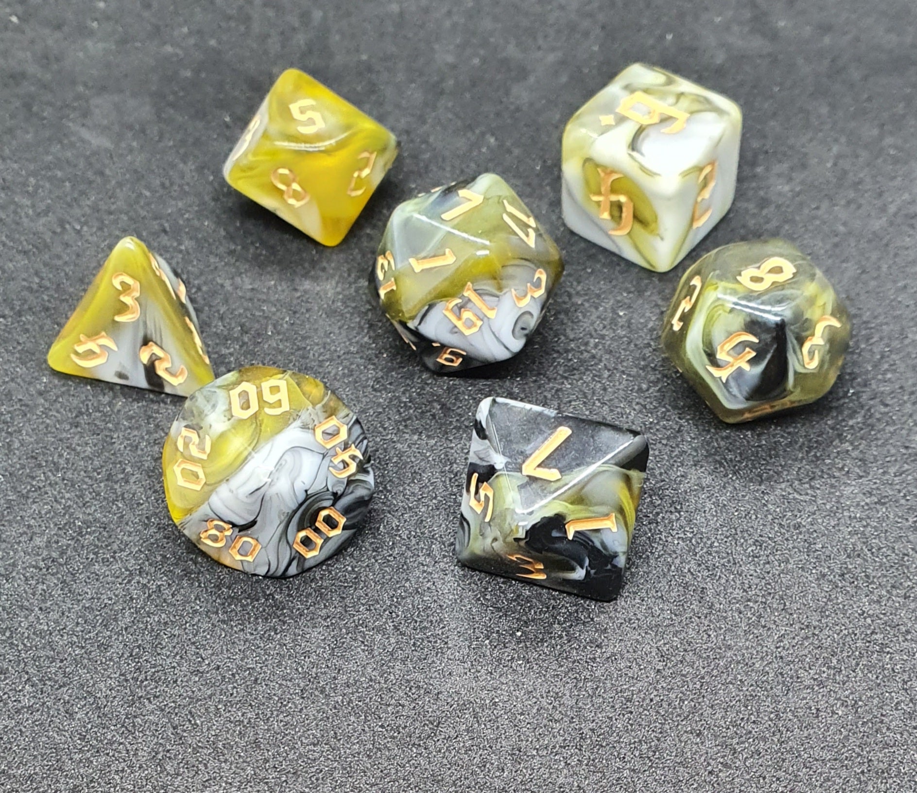 Full set of Polyhedral dice (d4, d6, d8, d10, d12, d20 and %)