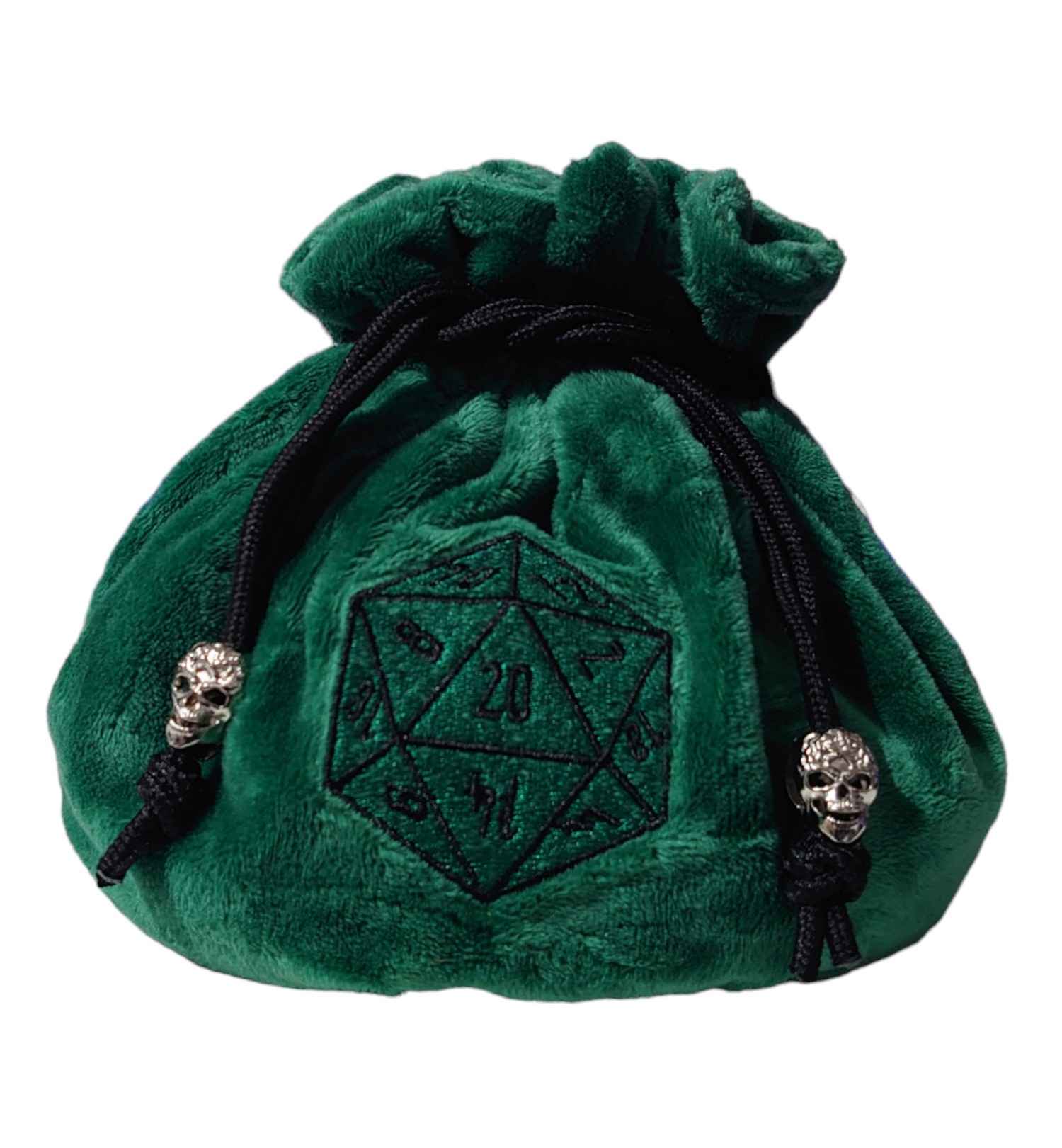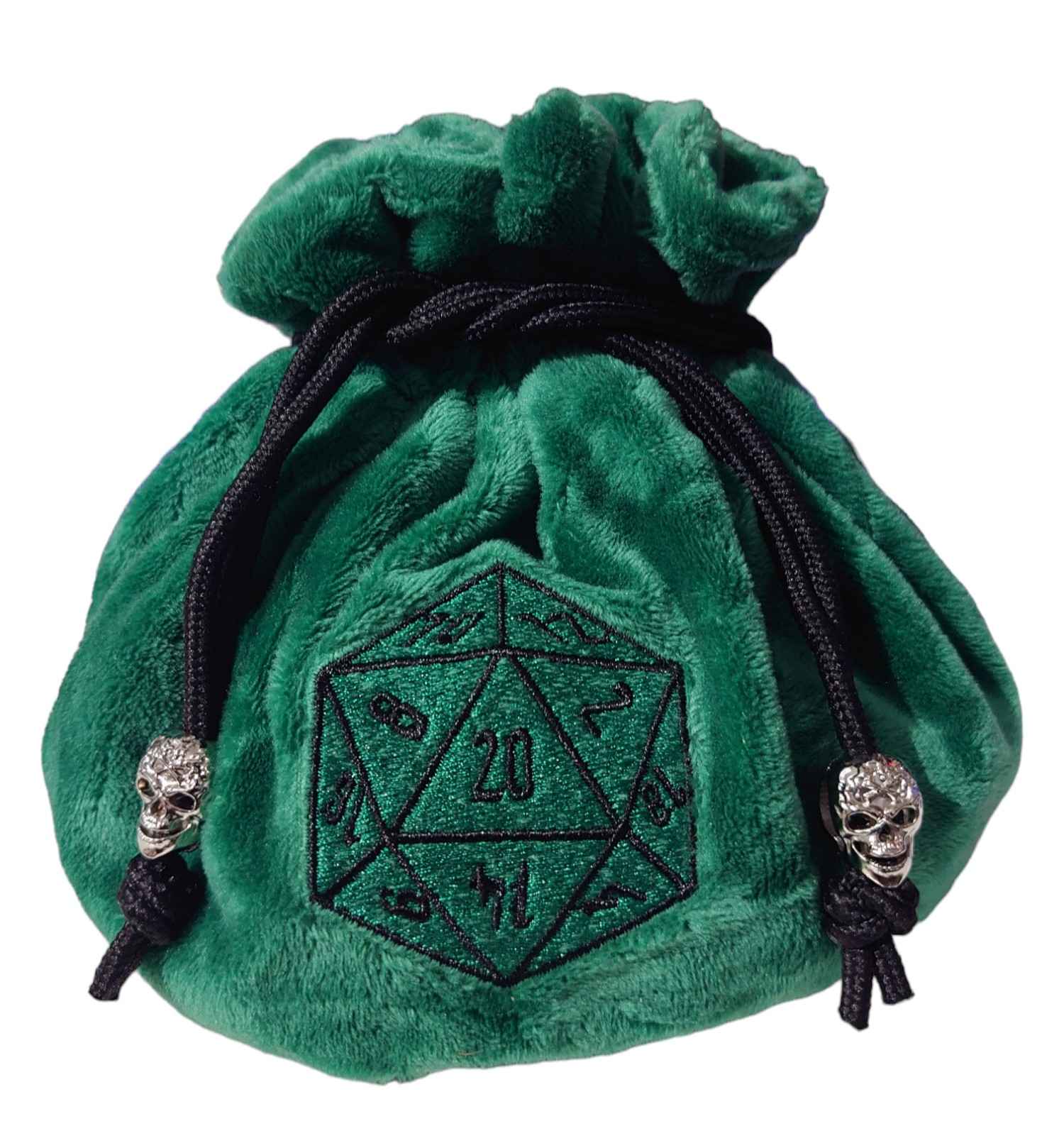 Made of soft green flannel this bag holds your dice and accessories with six internal pockets for your favourite sets and one large central pocket for multiple sets.