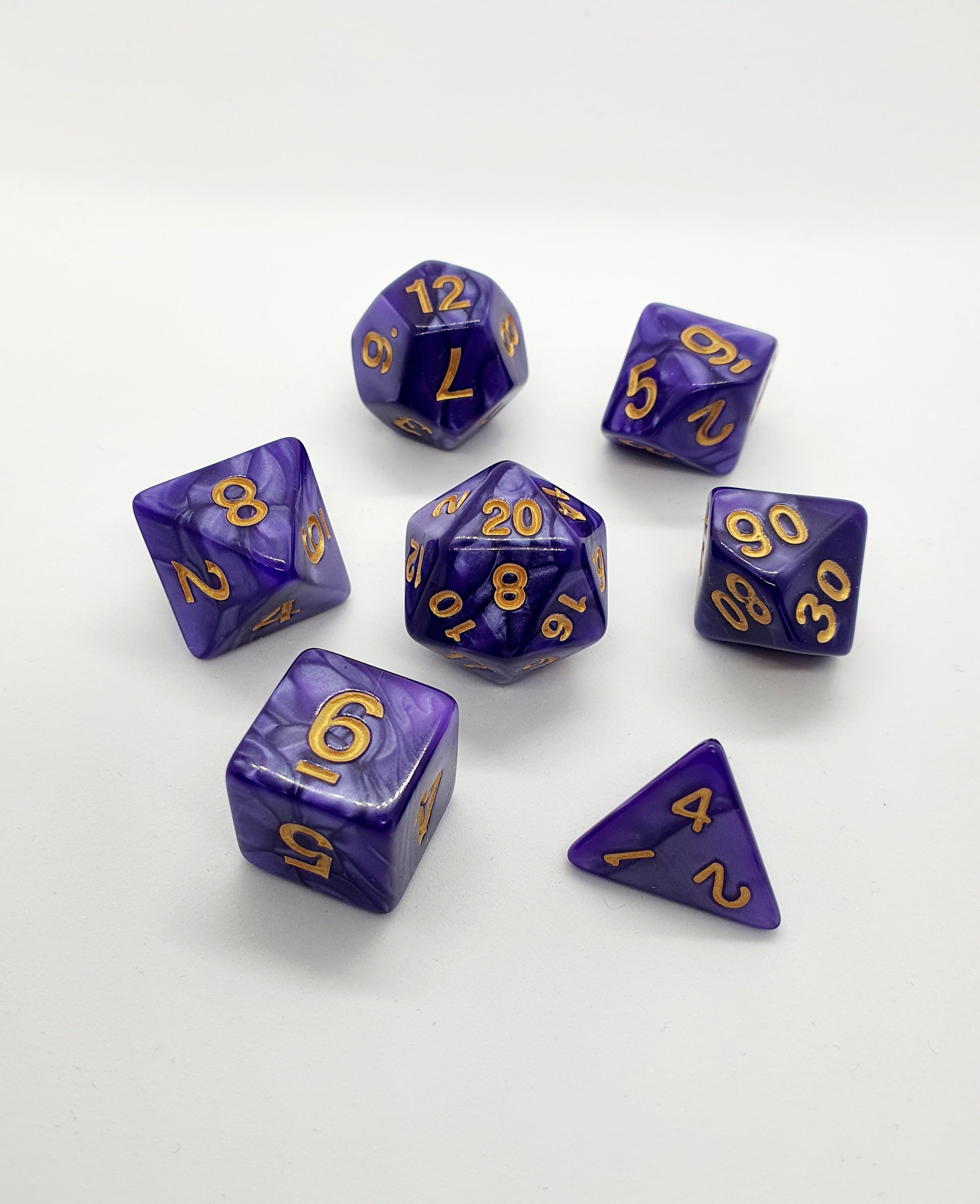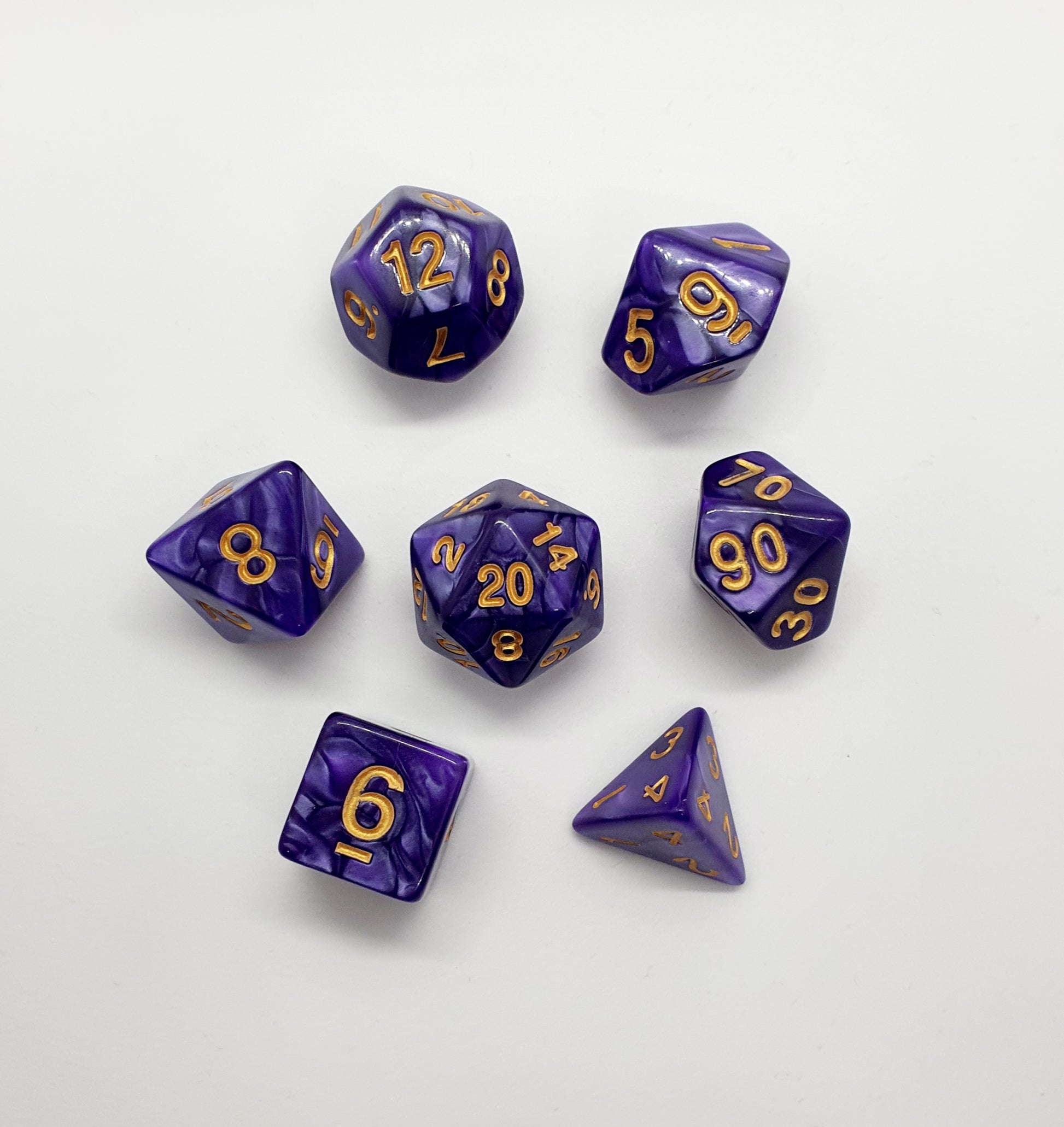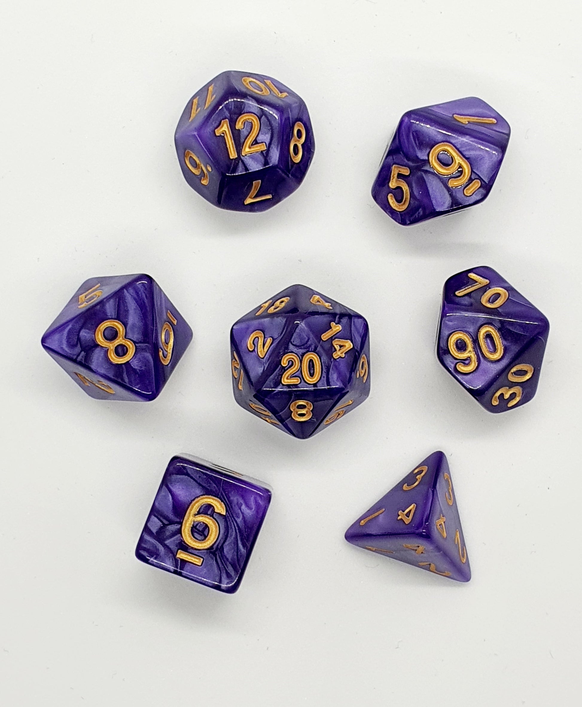 Full set of Polyhedral dice (d4, d6, d8, d10, d12, d20 and %)