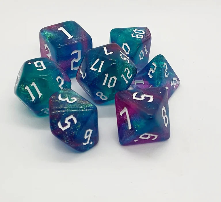 Full set of Polyhedral dice (d4, d6, d8, d10, d12, d20 and %)