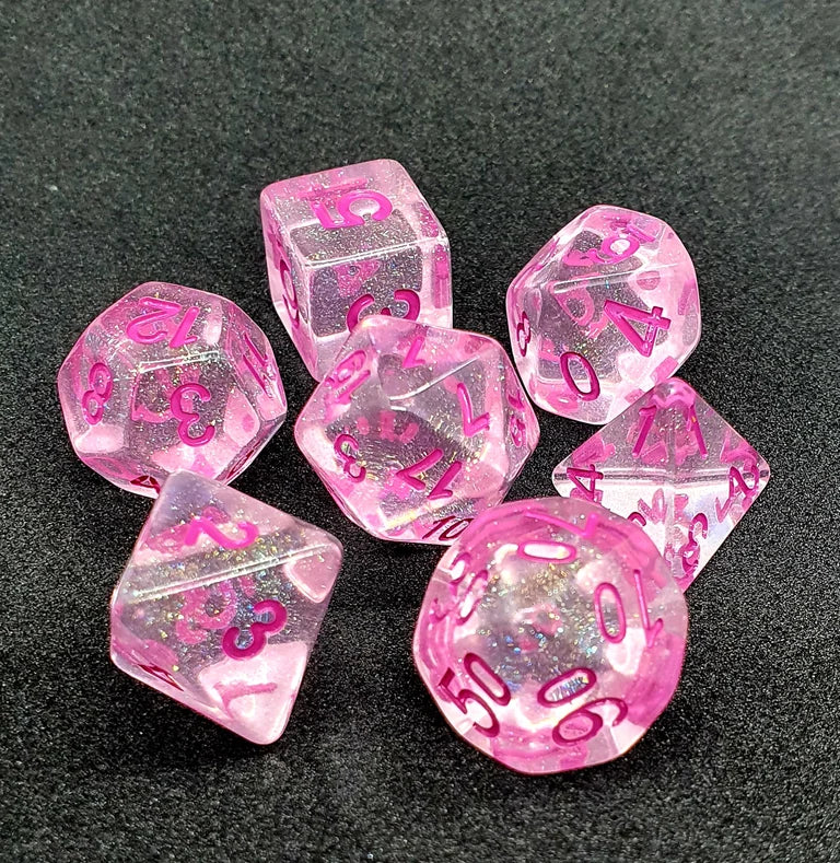Full set of Polyhedral dice (d4, d6, d8, d10, d12, d20 and %)