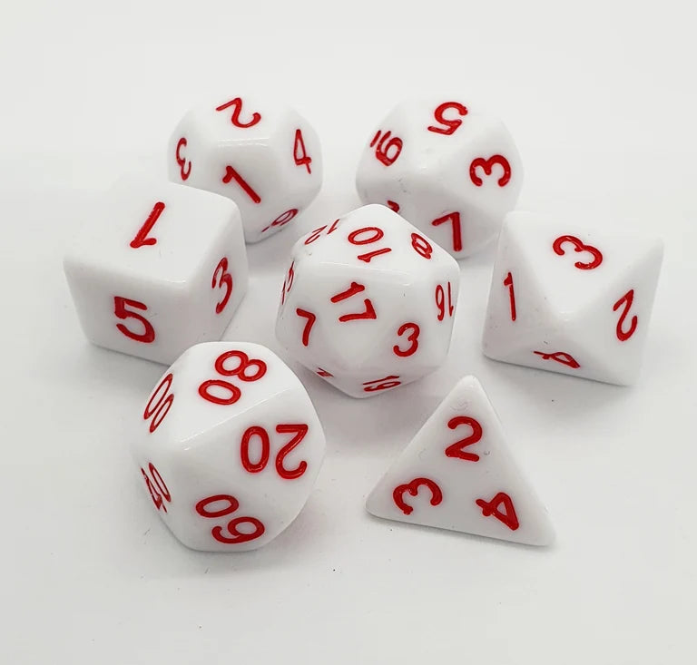 Full set of Polyhedral dice (d4, d6, d8, d10, d12, d20 and %)