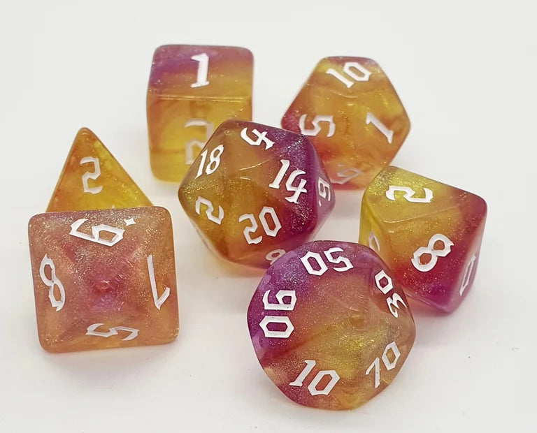 Full set of Polyhedral dice (d4, d6, d8, d10, d12, d20 and %)