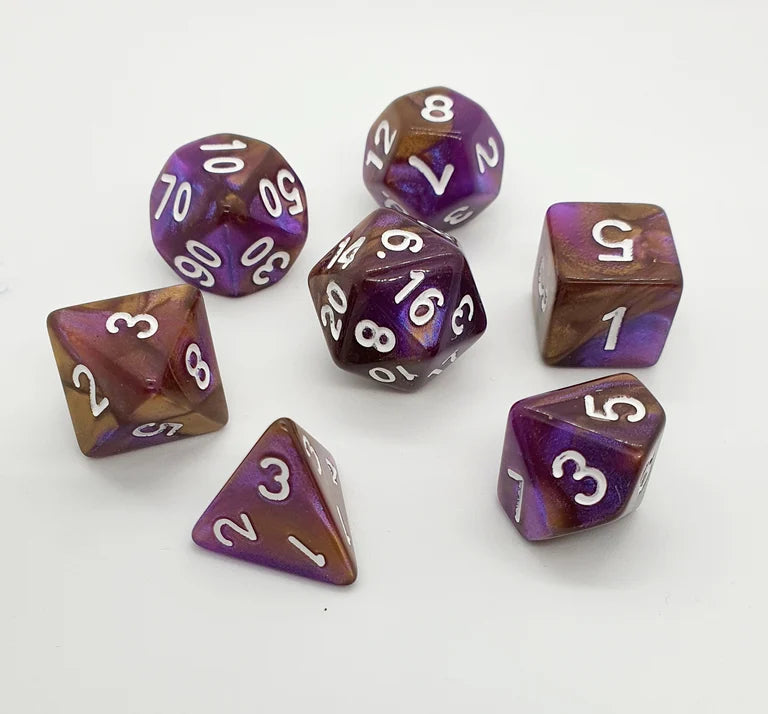 Full set of Polyhedral dice (d4, d6, d8, d10, d12, d20 and %)