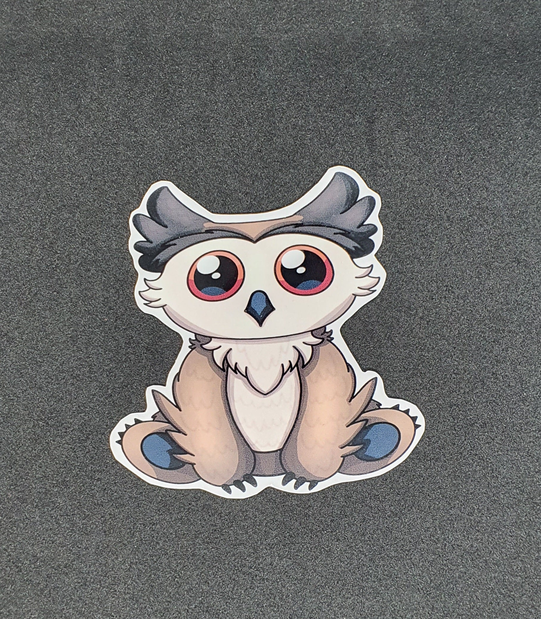 An owlbear is a fearsome creature that combines the features of an owl and a bear. They are usually hostile and dangerous, but this sticker shows a more cute and cuddly side of them. This sticker features a fluffy owlbear cub with big eyes and a curious expression. It is perfect for any fan of fantasy and role-playing games.