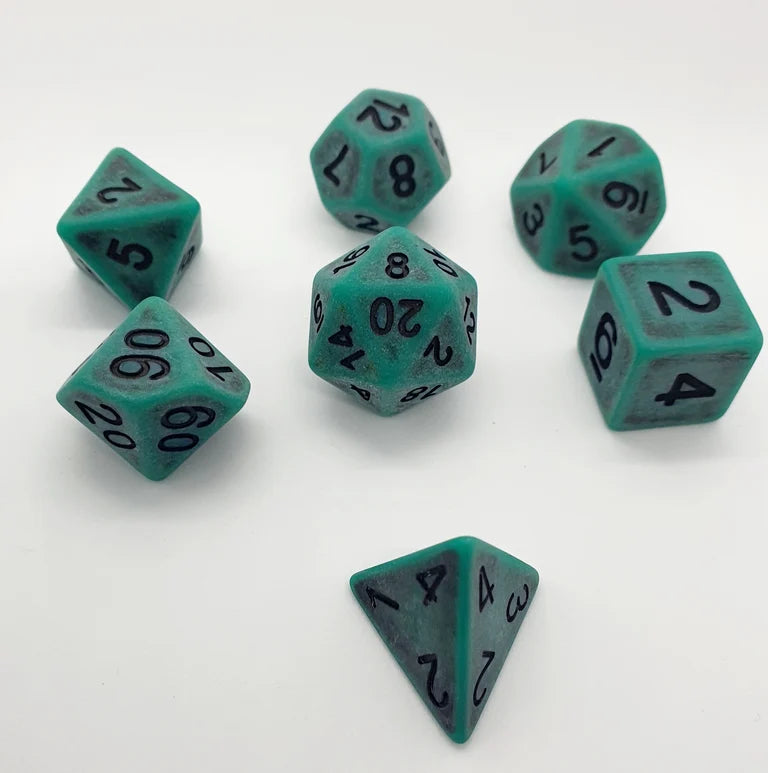 These agaed green dice in matt finish reflect the ageless horrors of the Elder God.