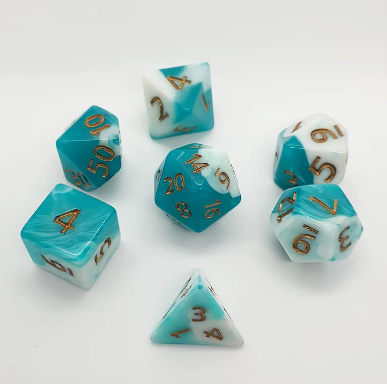 Full set of Polyhedral dice (d4, d6, d8, d10, d12, d20 and %)