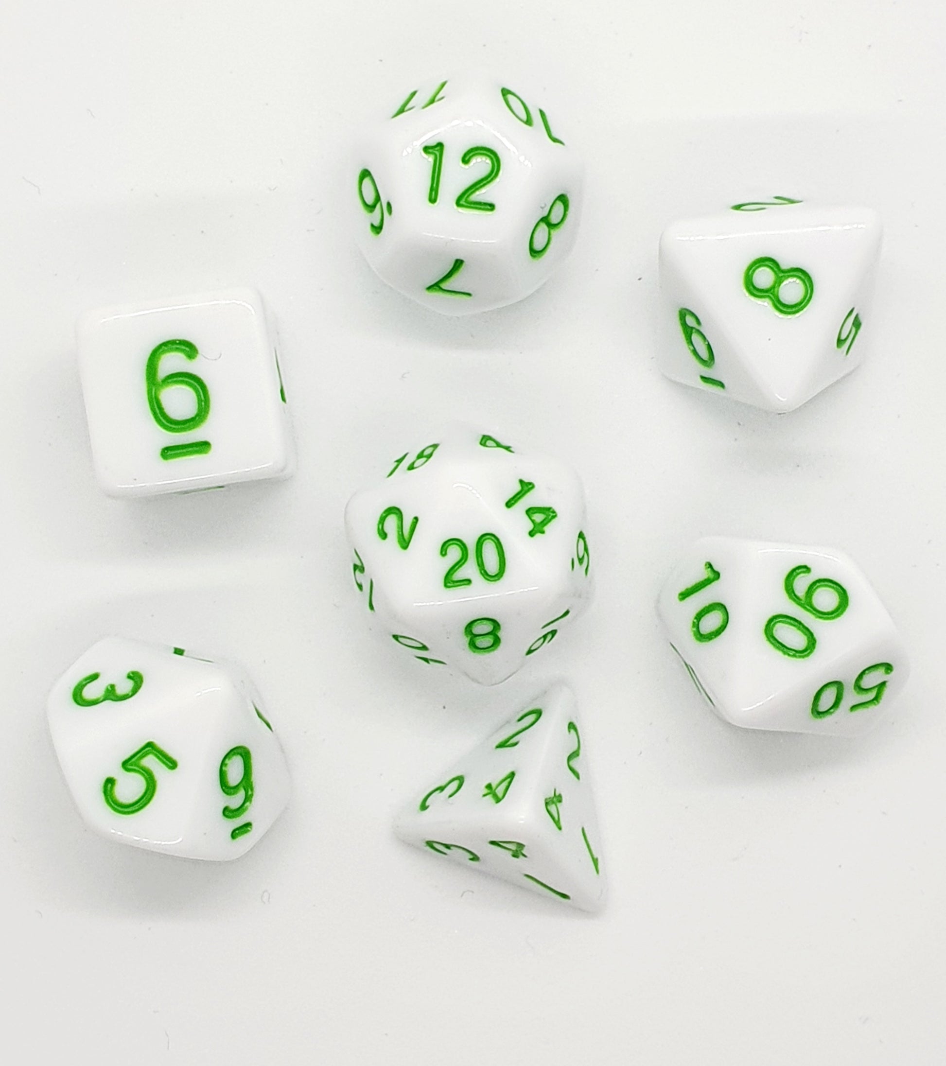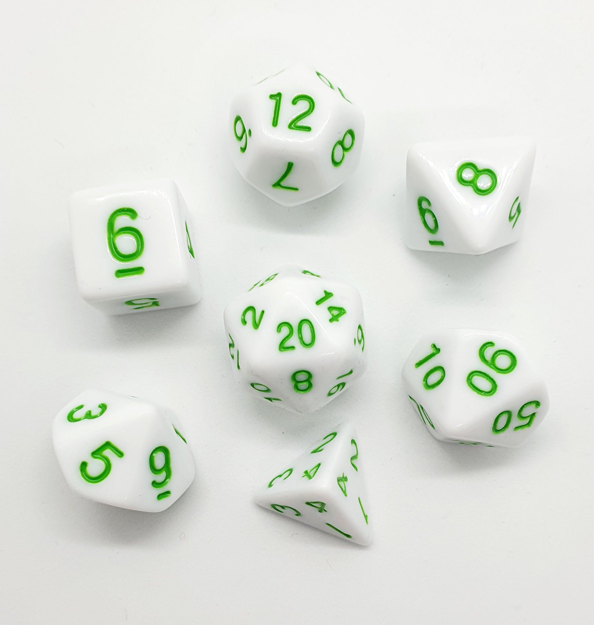 Full set of Polyhedral dice (d4, d6, d8, d10, d12, d20 and %)