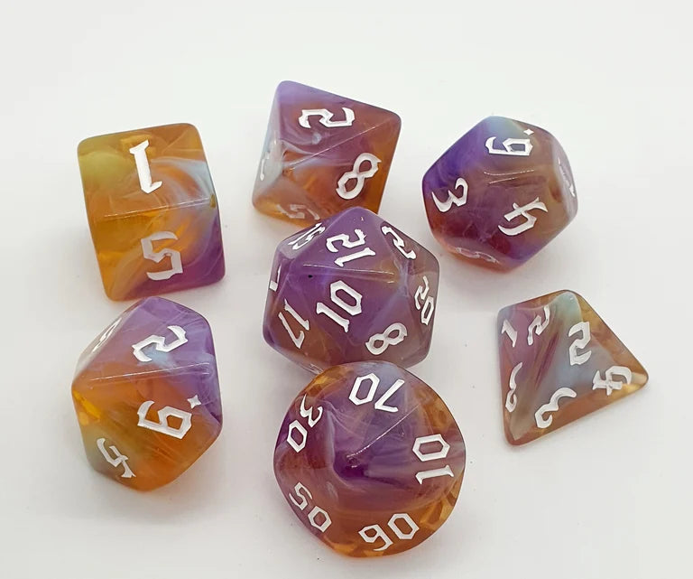 Full set of Polyhedral dice (d4, d6, d8, d10, d12, d20 and %)