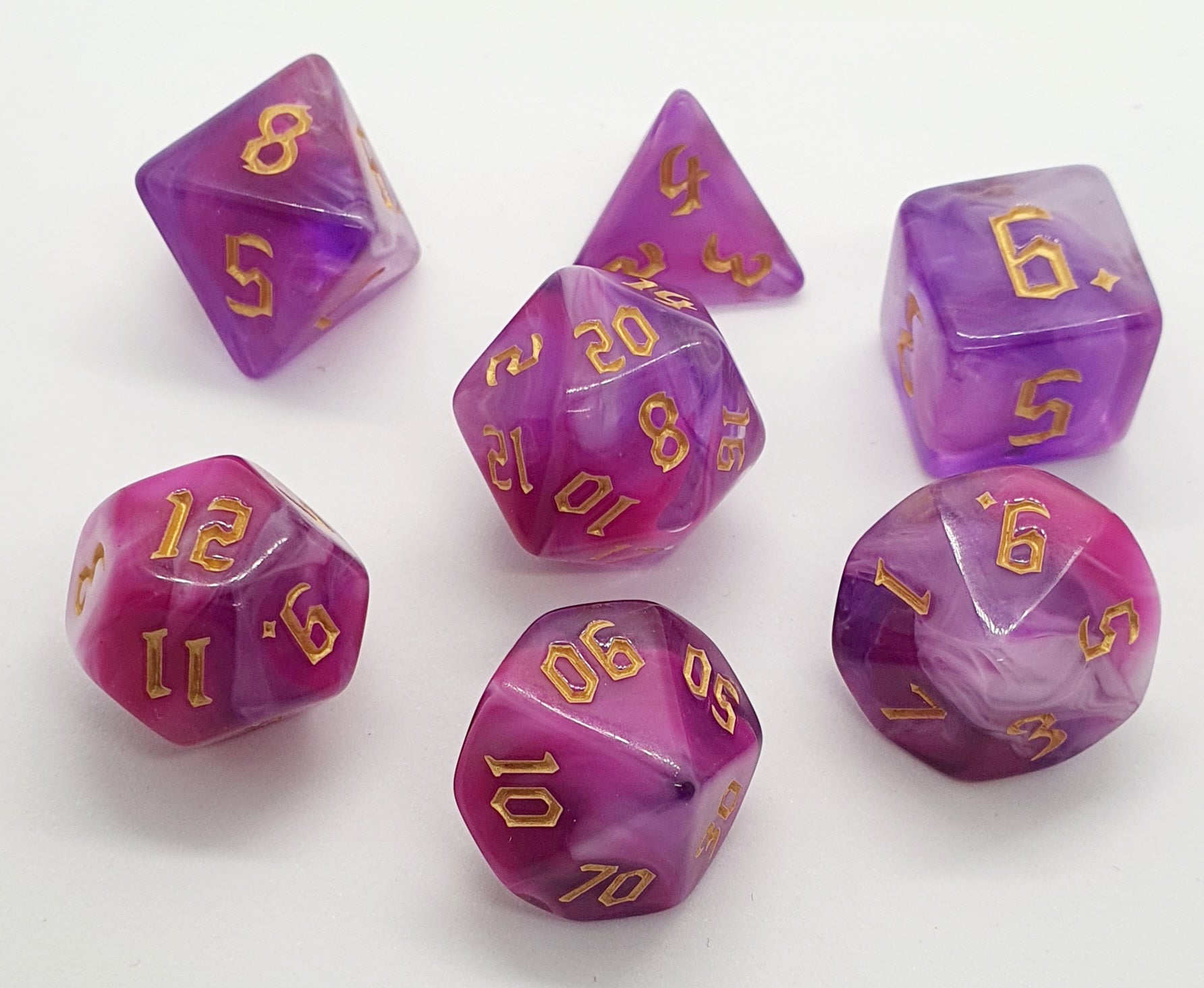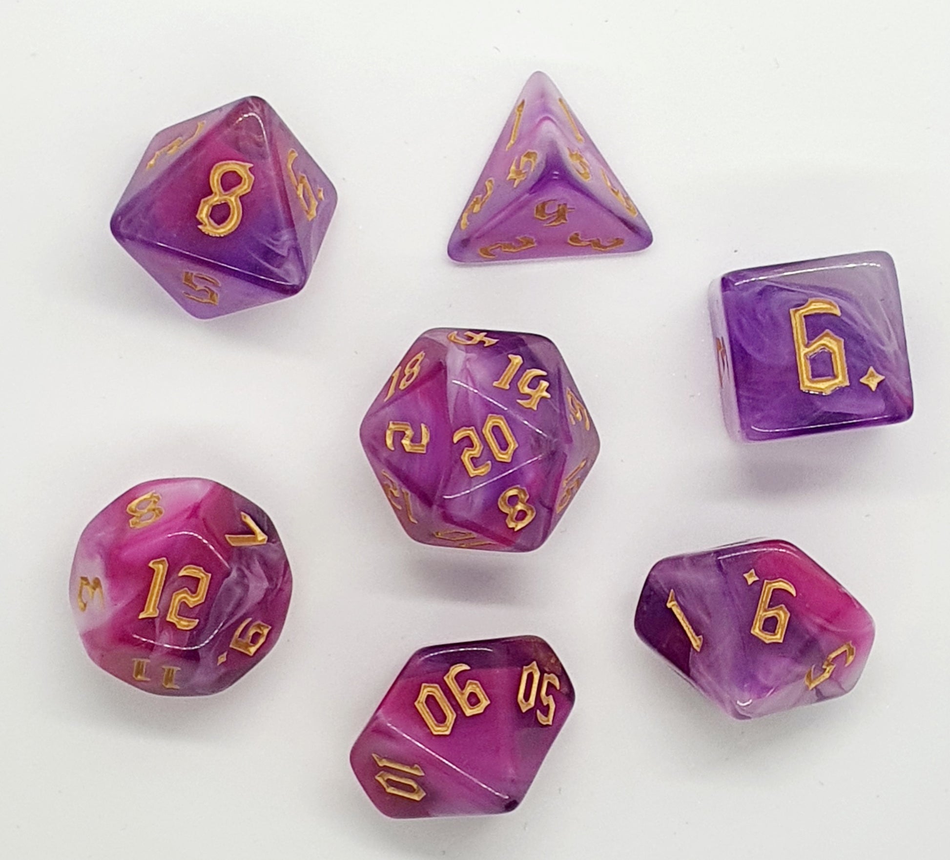 Full set of Polyhedral dice (d4, d6, d8, d10, d12, d20 and %)